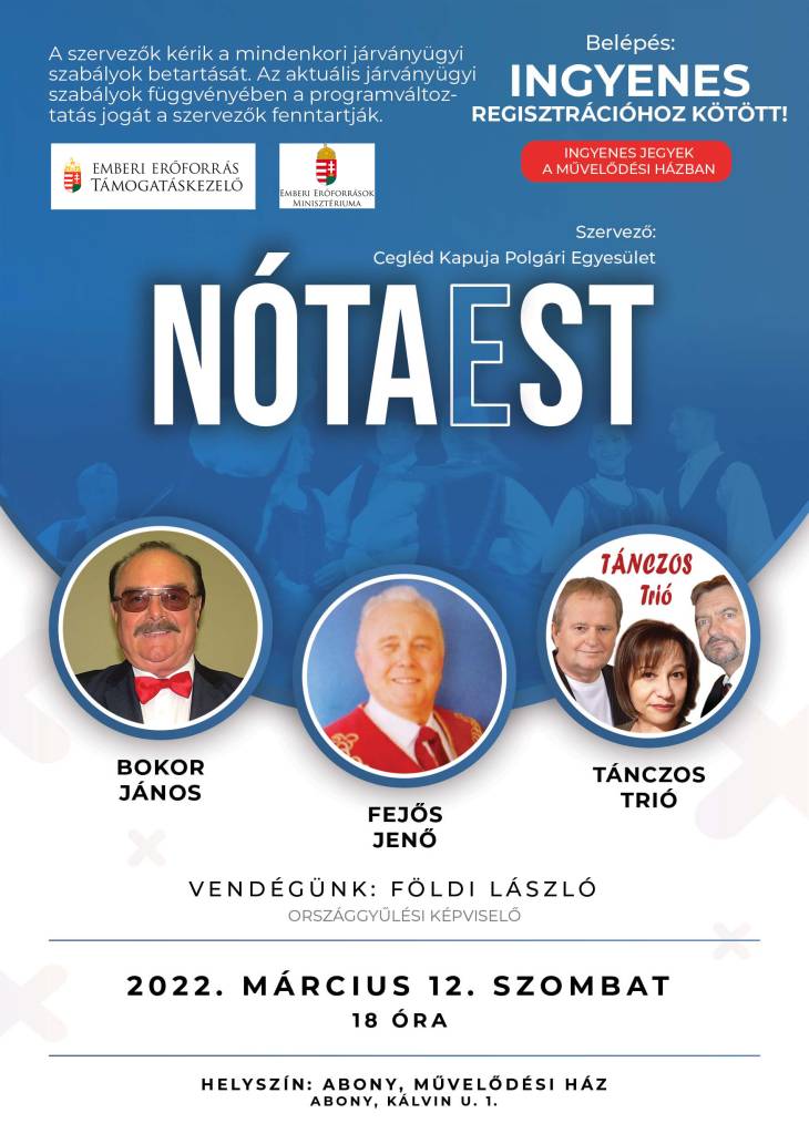 A Cegléd Kapuja Polgári Egyesület szervezésében Abonyban a Művelődési házban nótaesten vehettek részt az érdeklődők.